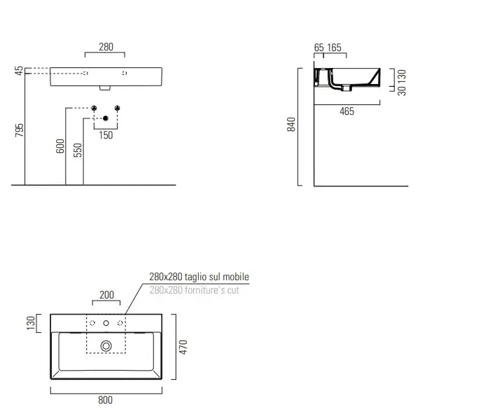 GSI Kube X Раковина встраиваемая сверху 80x37 см, с переливом, без д/к, цвет: белый глянцевый 895411
