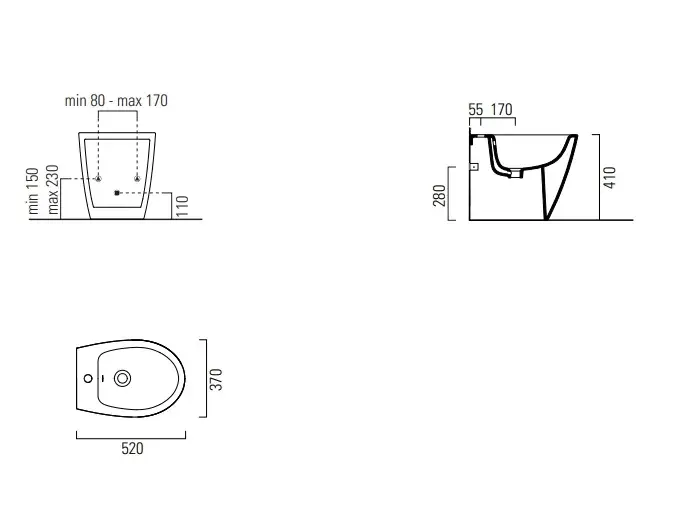 GSI Modo Биде подвесное с 1 отверстием под смеситель и переливом, без крепежа, цвет: ardesia opaco 9864126