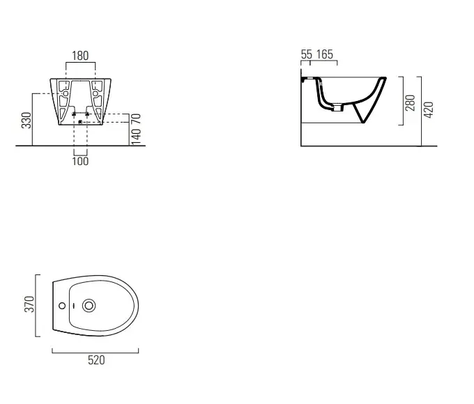GSI Modo Биде подвесное с 1 отверстием под смеситель и переливом, без крепежа, цвет: ardesia opaco 9864126