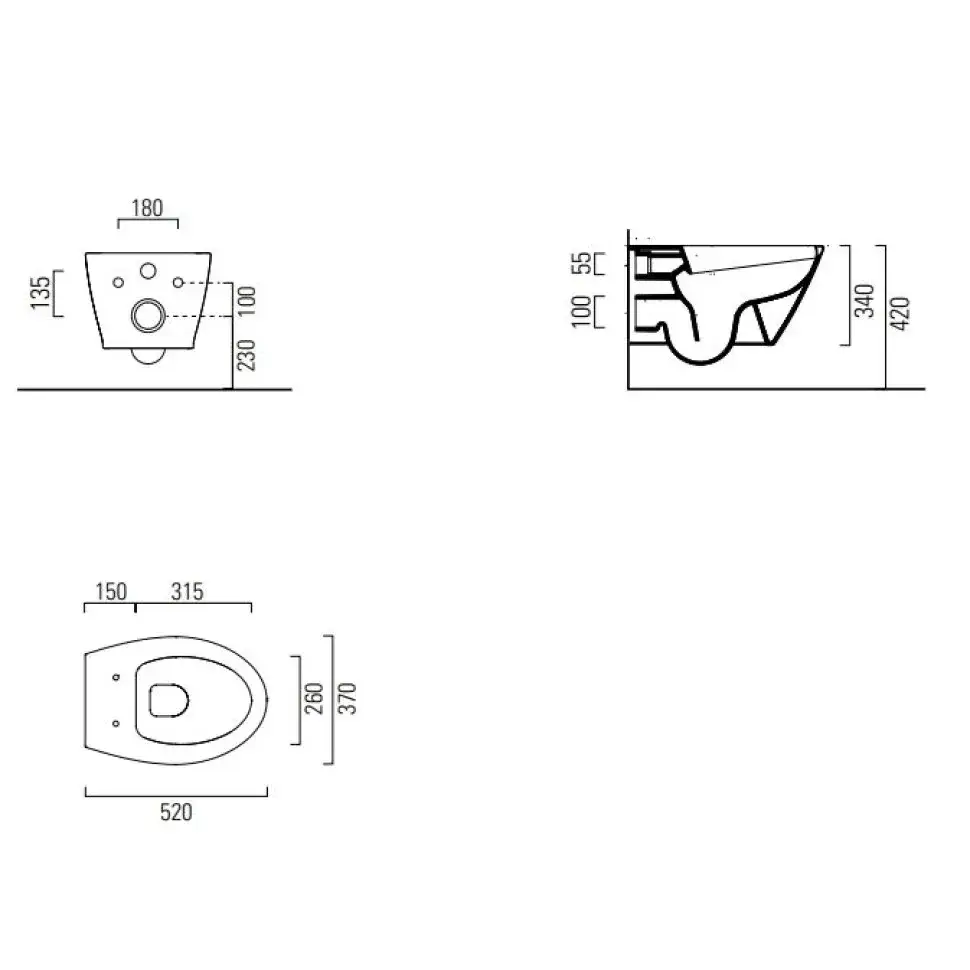 GSI Modo Унитаз подвесной 52x37 см безободковый, смыв swirlflush, цвет: белый матовый 981609