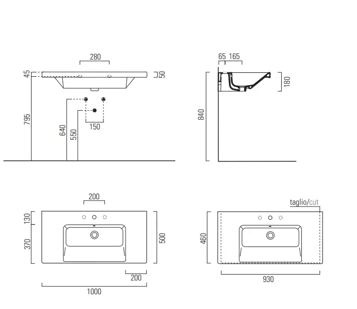 GSI Norm Раковина подвесная/встраиваемая 100x50 см, 1 отверстие, с переливом, цвет: белый глянцевый 8643111