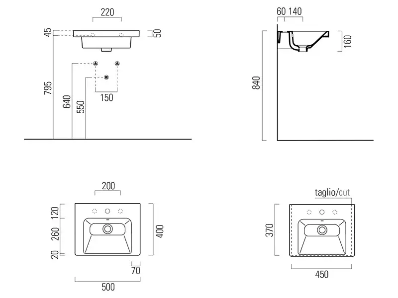 GSI Norm Раковина подвесная/встраиваемая 50x40 см, 1 отверстие, с переливом, цвет: белый глянцевый 8638111