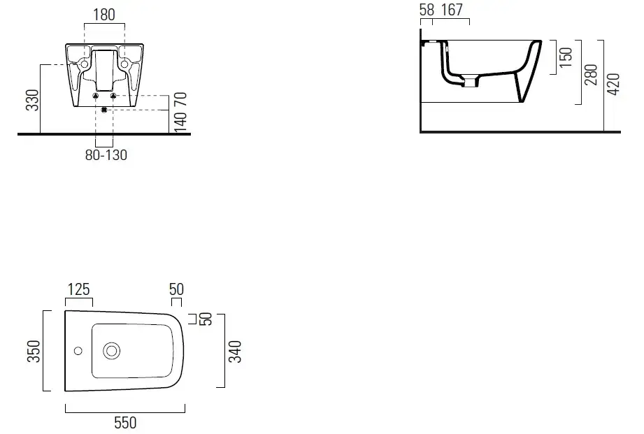 GSI Nubes Биде подвесное, 1 отверстие под смеситель, перелив, с крепежом, цвет: белый глянцевый 9665FR2111