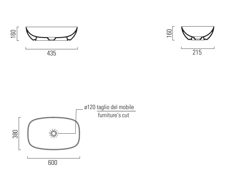 GSI Nubes Раковина чаша 60x38x16h см, без перелива, без д/к, цвет: белый глянцевый 978311