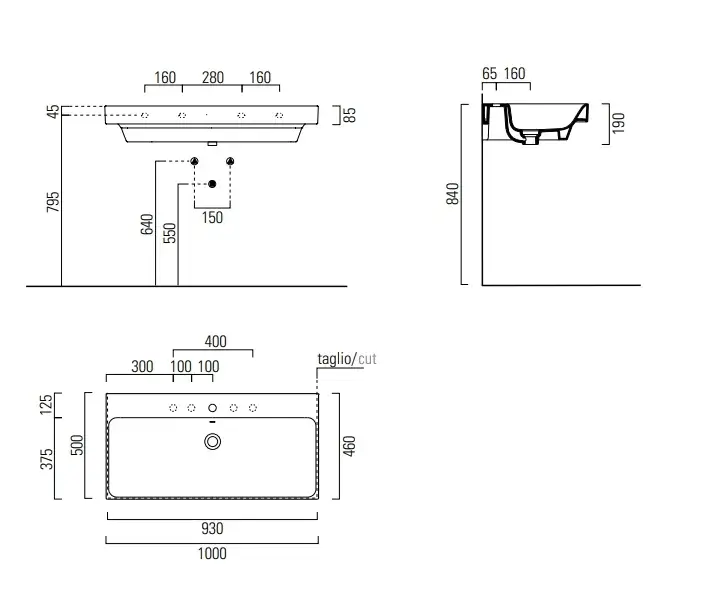 GSI Nubes Раковина подвесная/накладная 100x50 см, 1 отверстие, с переливом, цвет: белый глянцевый 9623111