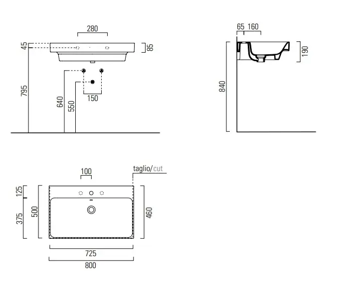 GSI Nubes Раковина подвесная/накладная 80x50 см, 1 отверстие, с переливом, цвет: белый глянцевый 9622111