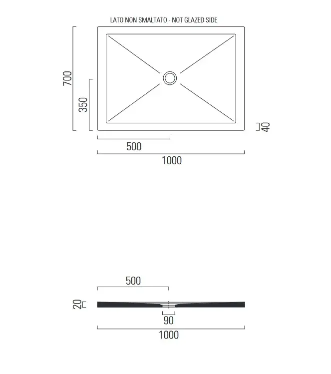GSI Pura H2 Душевой поддон керамический 200x90x2,5h см, цвет: ardesia opaco 46200926