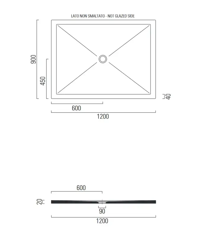 GSI Pura H2 Душевой поддон керамический 200x90x2,5h см, цвет: белый матовый 46200909