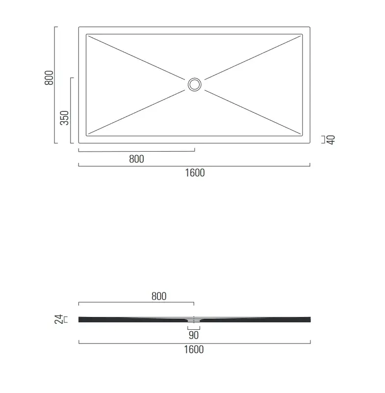 GSI Pura H2 Душевой поддон керамический 160x80x2,4h см, цвет: белый матовый 46160809