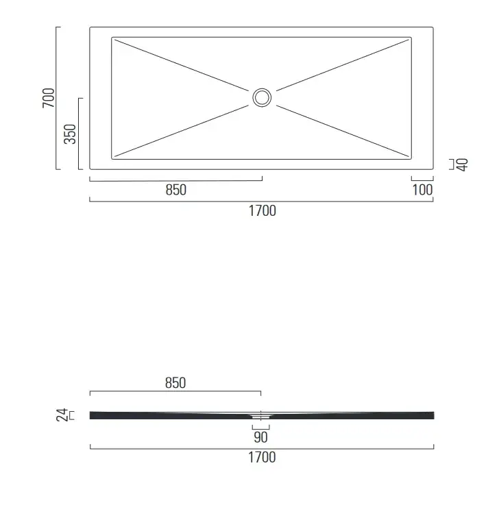 GSI Pura H2 Душевой поддон керамический 170x70x2,4h см, цвет: белый матовый 46170709