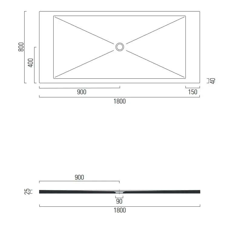 GSI Pura H2 Душевой поддон керамический 180x80x2,5h см, цвет: ardesia opaco 46180926