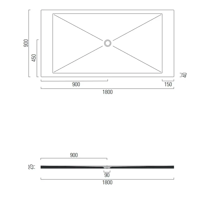 GSI Pura H2 Душевой поддон керамический 200x90x2,5h см, цвет: белый матовый 46200909