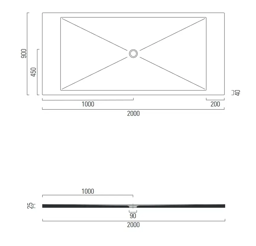 GSI Pura H2 Душевой поддон керамический 200x90x2,5h см, цвет: белый матовый 46200909