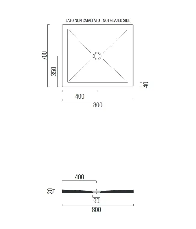 GSI Pura H2 Душевой поддон керамический 80x70x2h см, цвет: белый матовый 46080709