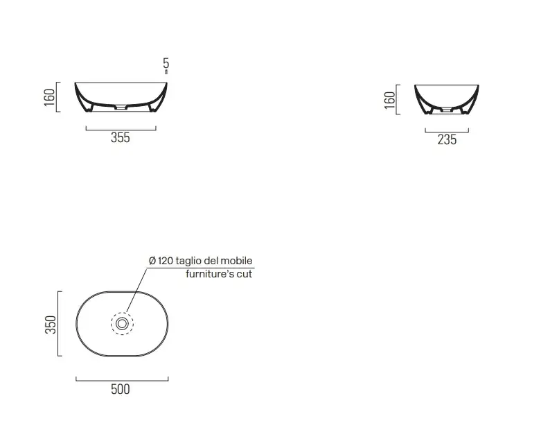 GSI Pura Раковина чаша 50x35x16h см, без перелива, без д/к, цвет: белый матовый 886009
