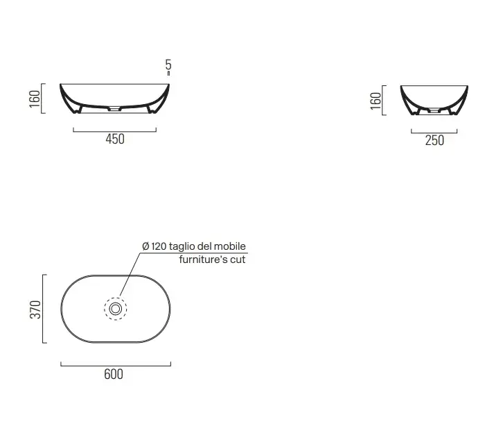 GSI Pura Раковина чаша 60x37x16h см, без перелива, без д/к, цвет: белый матовый 883409