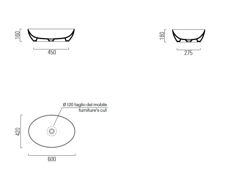 GSI Pura Раковина чаша 60x42x16h см, без перелива, без д/к, цвет: blush opaco 884224