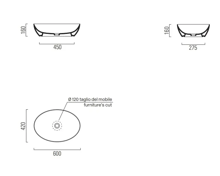 GSI Pura Раковина чаша 60x42x16h см, без перелива, с д/к, цвет: белый глянцевый 8842PVC11