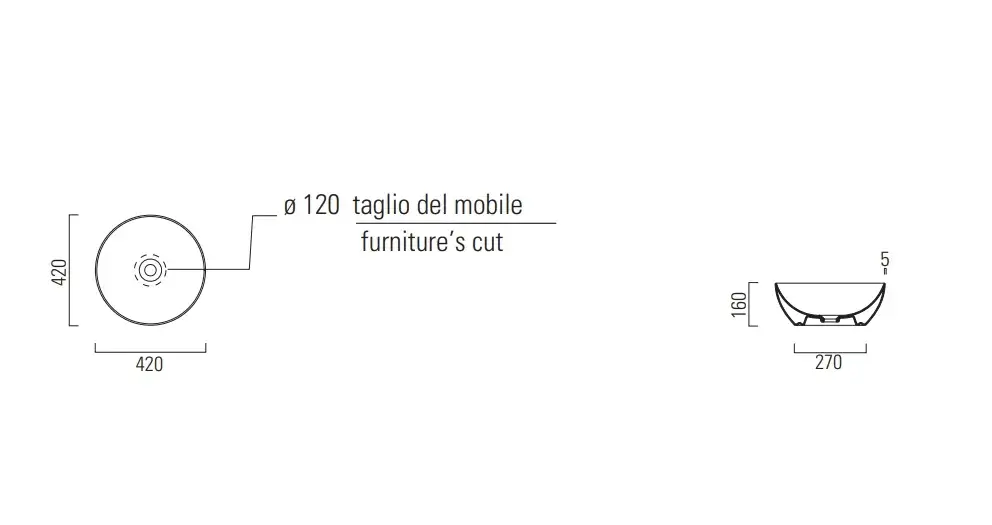 GSI Pura Раковина чаша d42x16h см, без перелива, без д/к, цвет: белый глянцевый 885111