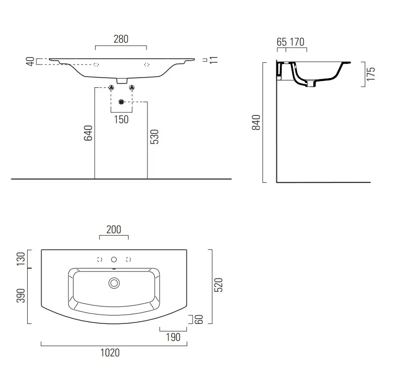 GSI Pura Раковина подвесная/накладная 102x52 см, 1 отверстие, с переливом, цвет: белый глянцевый 8825111
