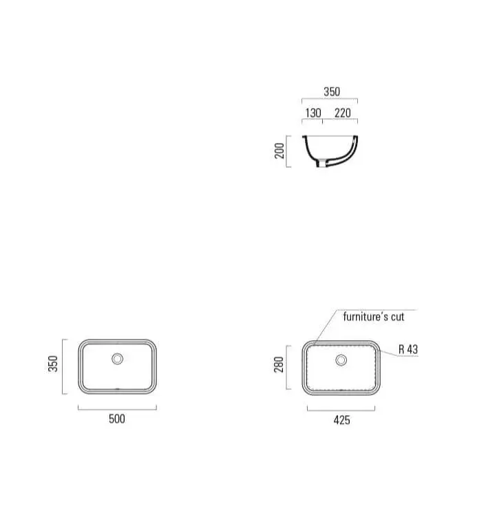 GSI Pura Раковина встраиваемая снизу 50x35 см, с переливом, без д/к, цвет: белый глянцевый 724711