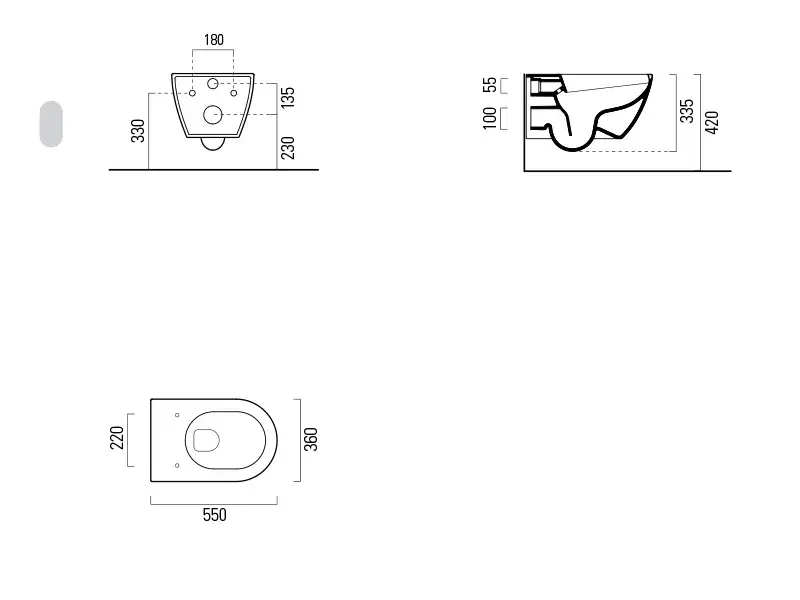 GSI Pura Унитаз подвесной 55x36 см безободковый, смыв swirlflush, с крепежом, цвет: creta opaco 8815FR208