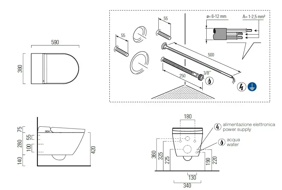 GSI WClean Унитаз подвесной умный, функция биде, безободковый, крышка микролифт, цвет: cenere opaco 7418K17