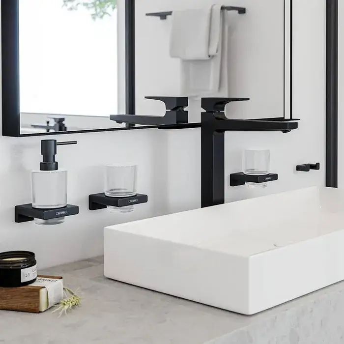 Hansgrohe AddStoris Стакан для зубных щеток подвесной, матовое стекло, латунь цвет: черный 41749670