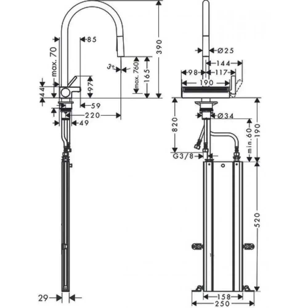 Hansgrohe Aquno Select M81 Смеситель для кух. мойки однорыч. 250, с выдв. изл. цвет: нержав. сталь 73836800
