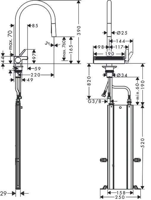 Hansgrohe Aquno Select M81 Смеситель для кух. мойки однорыч. 250, с выдв. изл. цвет: нержав. сталь 73836800