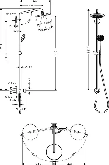 Hansgrohe Croma Душевая стойка: верхний душ 22 см, ручной душ 4 режима, цвет: хром 27224000