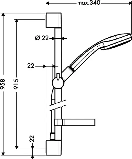 Hansgrohe Croma Душевой гарнитур: лейка 1 режим, мыльница, штанга 96 см, шланг 160 см, цвет: хром 27724000