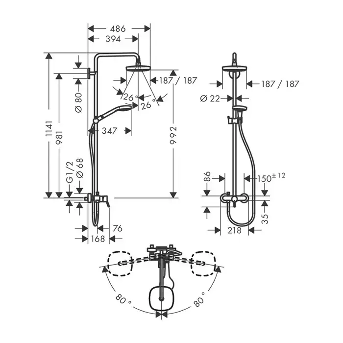 HG Croma Select E Душевая система Showerpipe: верх.душ 180 2jet, ручн.душ, шланг, смеситель для душа, цвет: белый/хром