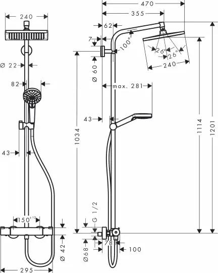 Hansgrohe Crometta E Душевая стойка: термостат, верхний душ 24x24 см, ручной душ, цвет: хром 27271000