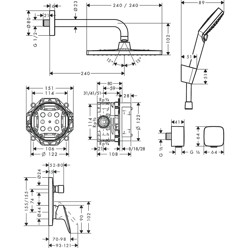 Hansgrohe Crometta E Душевой комплект: смеситель, верхний душ 24 см, лейка 2 режима, цвет: хром 27957000