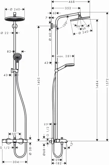Hansgrohe Crometta S Душевая стойка: термостат, верхний душ 24 см, ручной душ 2 режима, цвет: хром 27267000