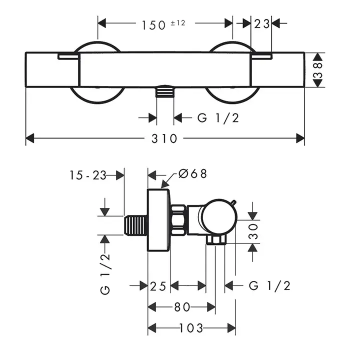 Hansgrohe Ecostat Fine Термостат для ванны, излив 17,7 см, EN 1717, цвет: матовый черный 13325670