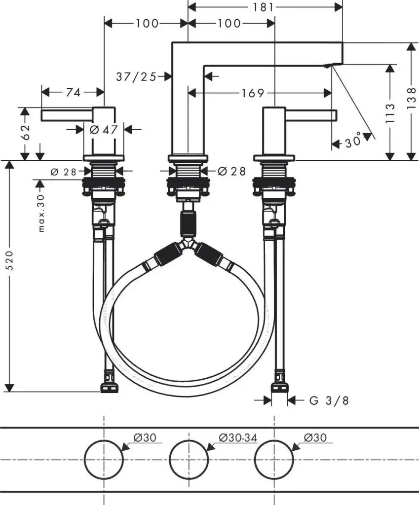 Hansgrohe Finoris Смеситель для раковины на 3 отверстия двухвентильный, цвет: хром 76033000