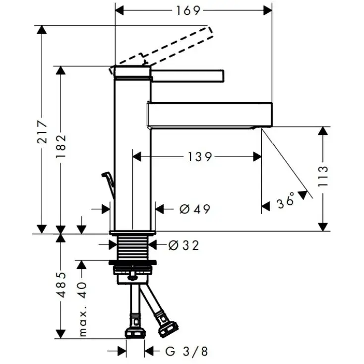 Hansgrohe Finoris Смеситель для раковины однорычажный, с донным клапаном, цвет: матовый черный 76020670