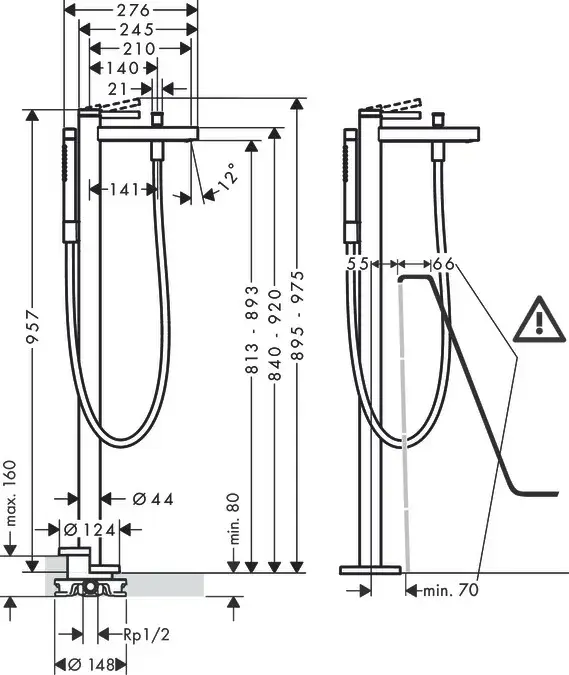 Hansgrohe Finoris Смеситель для ванны с душем напольный, отдельностоящий, цвет: хром 76445000