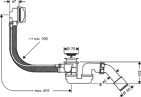 Hansgrohe Flexaplus Слив-перелив для ванны, для нестандартных ванн, тросик 78 см скрытая часть 58141180