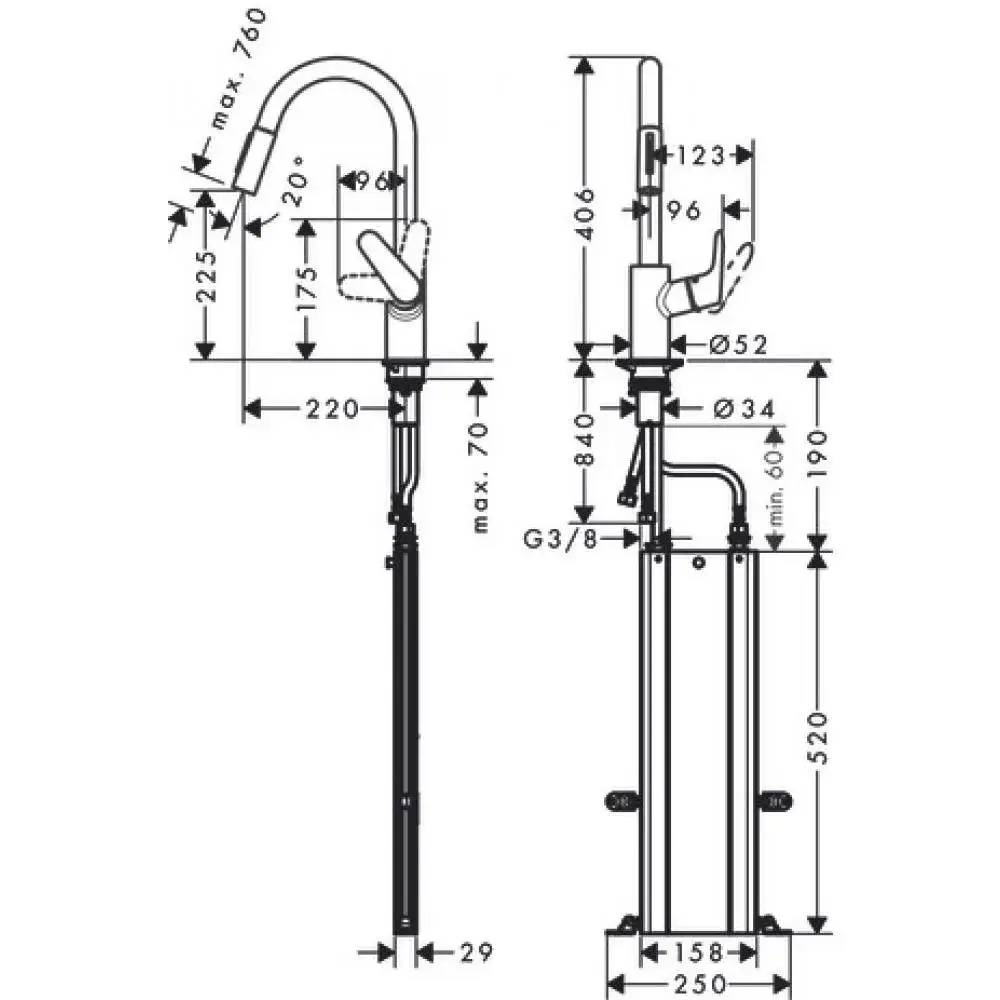 Hansgrohe Focus M41 Смеситель для кухни с выдвижным изливом, латунь, цвет: нержавеющая сталь 31833800