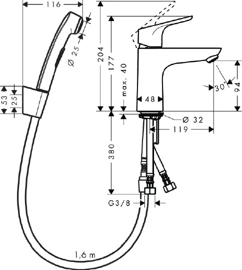 Hansgrohe Focus Смеситель для раковины однорычажный с гигиеническим душем, цвет: хром 31927000