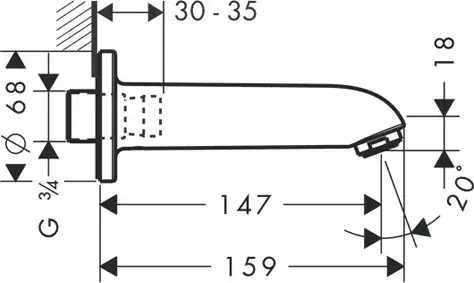Hansgrohe Излив настенный для ванны 14,7 см, цвет: хром 13414000