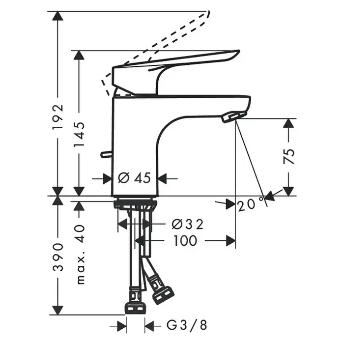 HG Logis E Смеситель для раковины 70 на 1 отв. без донного клапана, излив 100мм, h76мм, цвет: хром