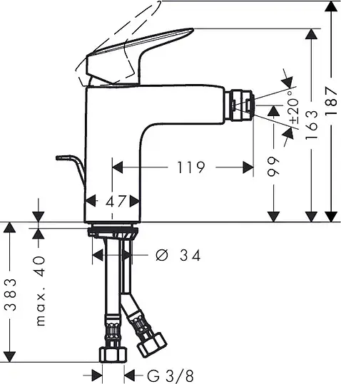 Hansgrohe Logis Смеситель для биде, однорычажный, на 1 отверстие, с донным клапаном, цвет: хром 71200000