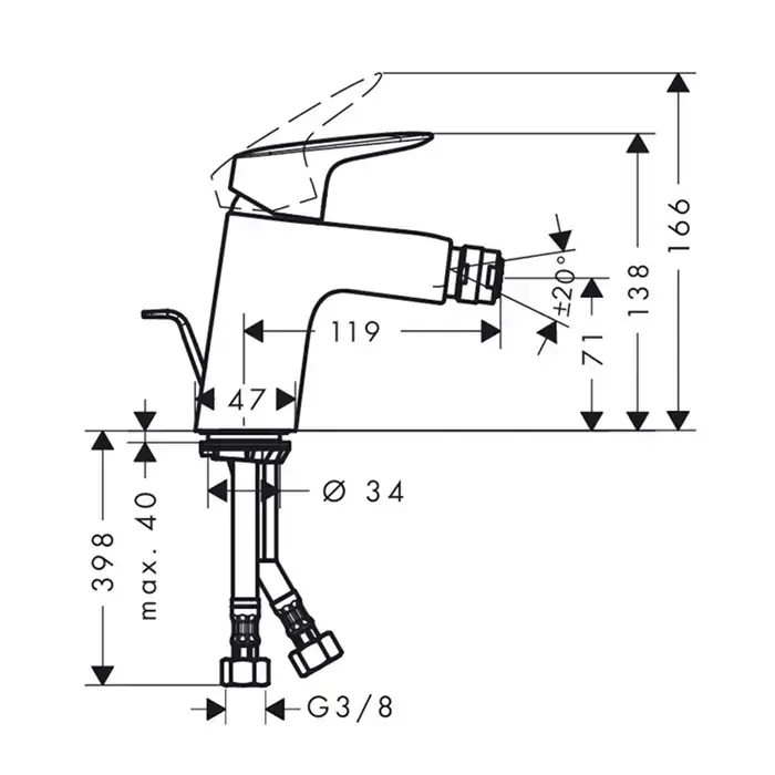 HG Logis Смеситель для биде 70 на 1 отв. с донным клапаном, излив 119мм, h71мм, цвет: хром