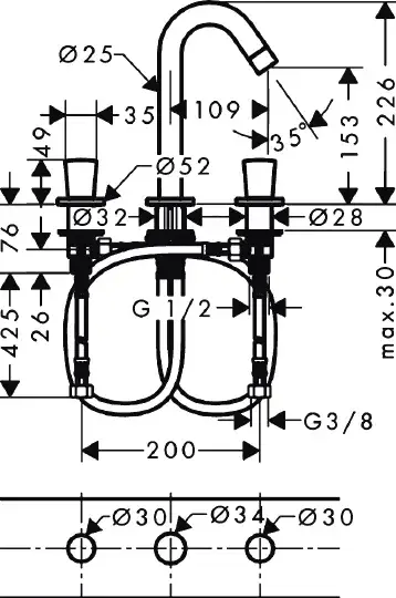 Hansgrohe Logis Смеситель для раковины на 3 отверстия двухвентильный с двумя рукоятками, цвет: хром 71133000