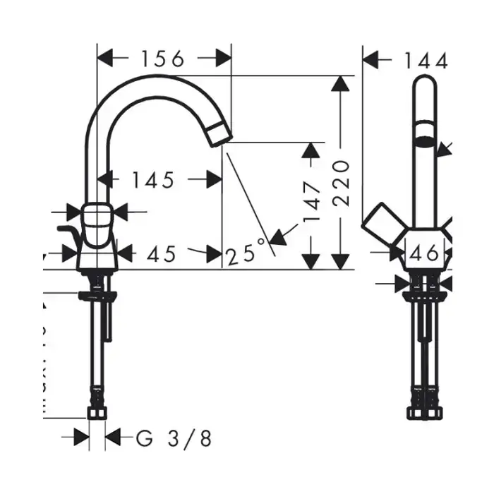 HG Logis Смеситель для раковины 150, на 1 отв. с донным клапаном, излив 145мм, h147мм, 2 ручки цвет: хром