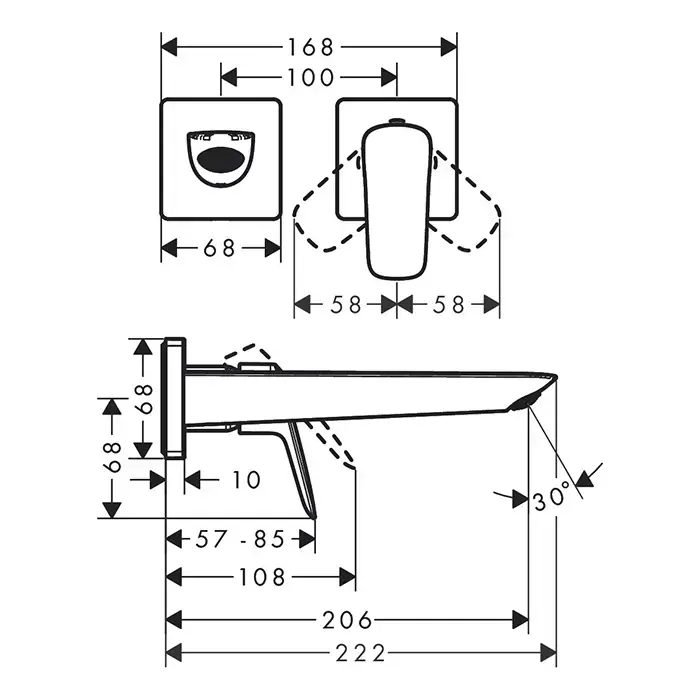HG Logis Смеситель для раковины, однорычажный, Fine скрытый настенный монтаж, с изливом 20,5 см, матовый черный